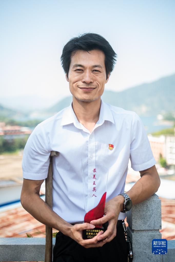 尹傳波被王英鎮政府評為“最美王英人”榮譽(yù)稱(chēng)號。這是他手持獎杯留影(8月18日攝)。