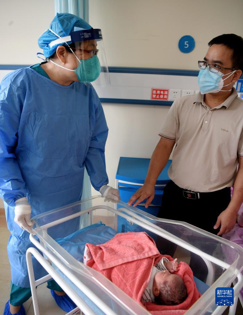 8月19日,海南三亞市婦女兒童醫院婦產(chǎn)科主任醫師田秀娟(左)在住院部了解新生兒健康狀況。