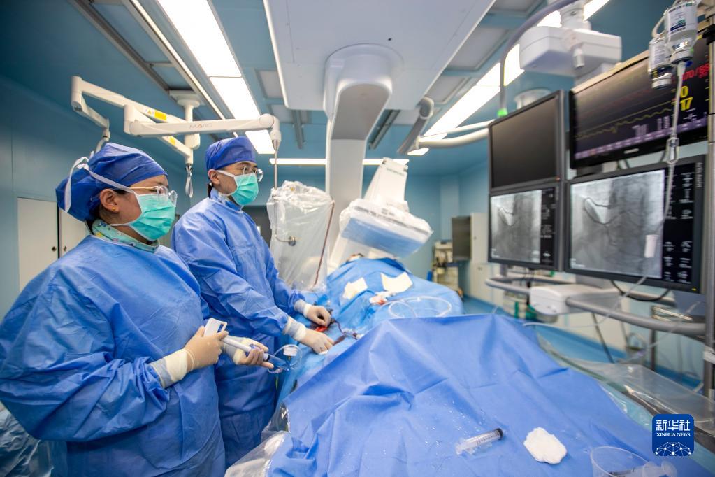 8月19日,在南京醫科大學(xué)附屬泰州人民醫院,心內科醫務(wù)人員為患者進(jìn)行治療。