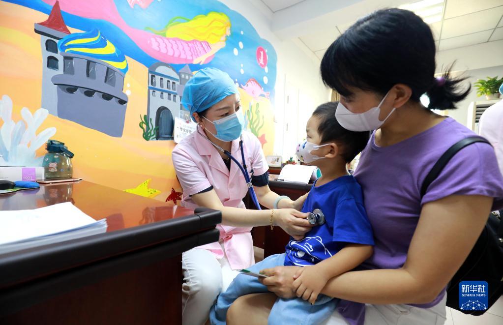8月19日,在河北省石家莊市長(cháng)安區婦幼保健院,醫務(wù)人員為兒童進(jìn)行入園體檢。