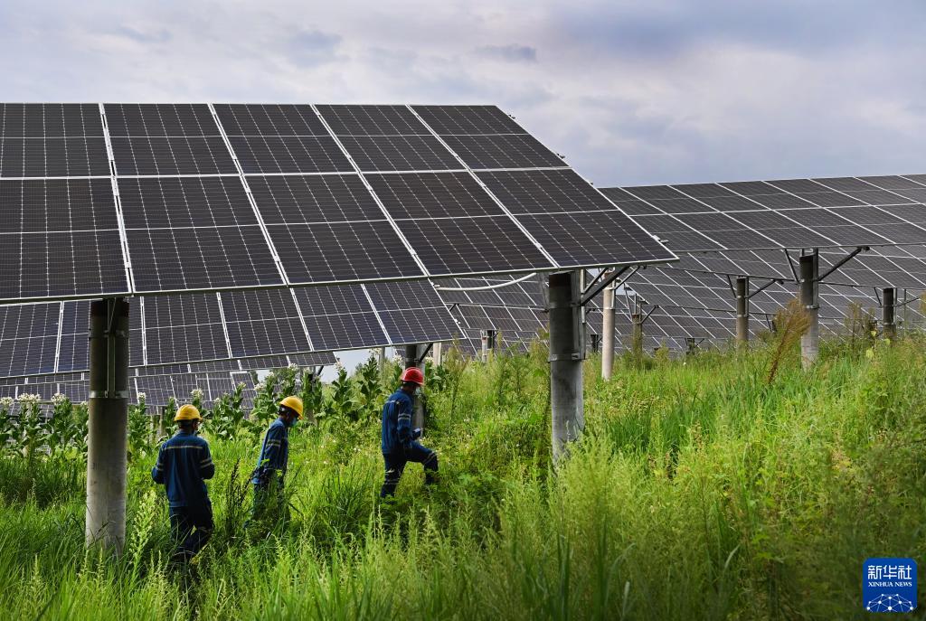 負責生產(chǎn)運維的湖南安華源電力科技有限公司員工對光伏區進(jìn)行日常巡視(8月19日攝)。