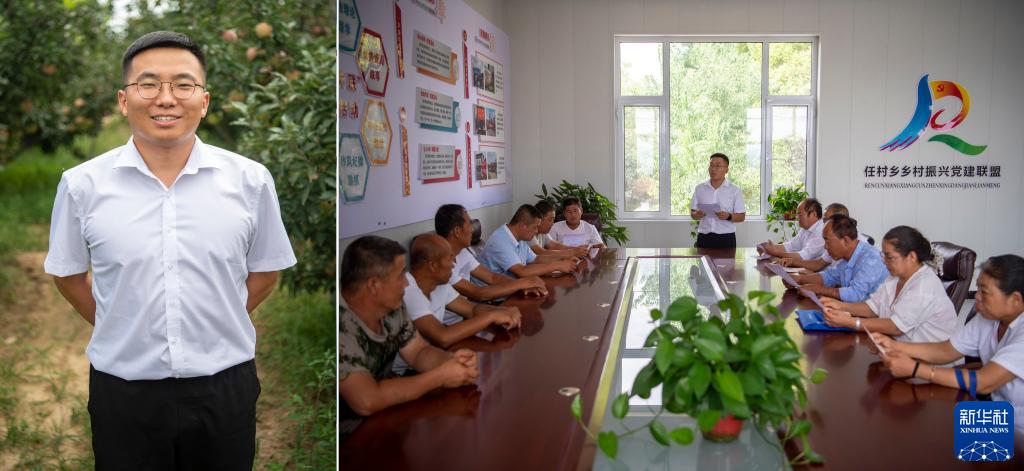 拼版照片:左圖為任村鄉碩士宣講團成員薛國進(jìn);右圖為薛國進(jìn)在任村鄉東卜村進(jìn)行宣講(8月19日攝)。