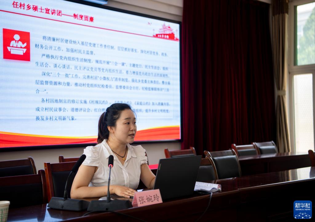碩士宣講團成員張婉玲在任村鄉進(jìn)行宣講(8月19日攝)。