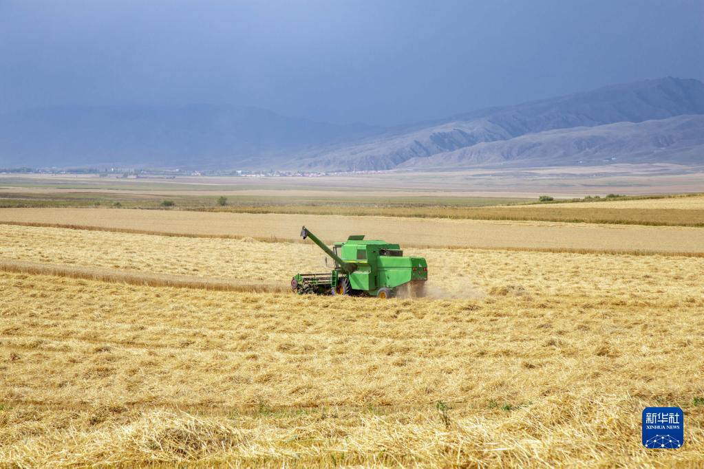 8月,新疆伊犁河谷上的昭蘇高原,連片的麥田陸續成熟,聯(lián)合收割機來(lái)回穿行忙碌,一片豐收景象。
