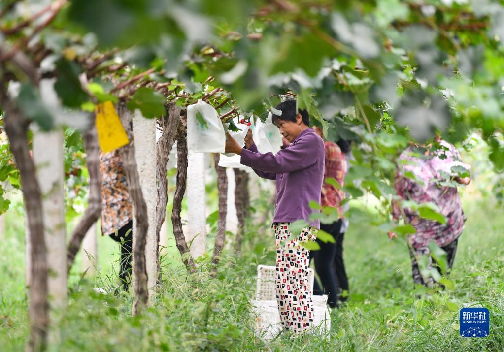 8月19日,果農在一處葡萄種植園內采摘葡萄。