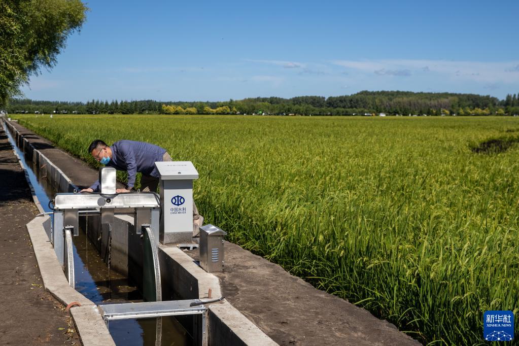 8月20日,工作人員在北大荒集團閆家崗農場(chǎng)有限公司農業(yè)現代化示范區內檢查自動(dòng)排水灌溉設備。