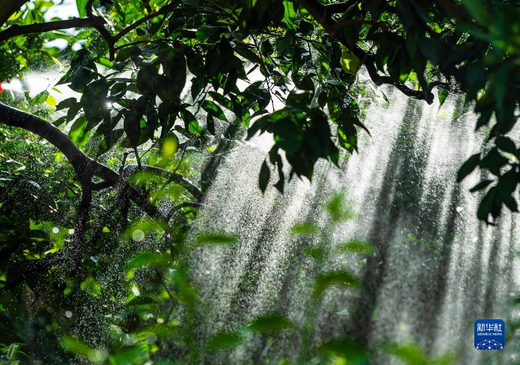 秭歸縣泄灘鄉陳家灣村架設的噴灌設施(8月13日攝)。