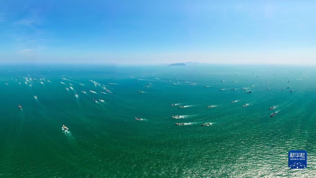 8月16日,福建省福州市連江縣黃岐、苔菉兩個(gè)中心漁港開(kāi)漁出海的漁船在海面航行(無(wú)人機照片)。