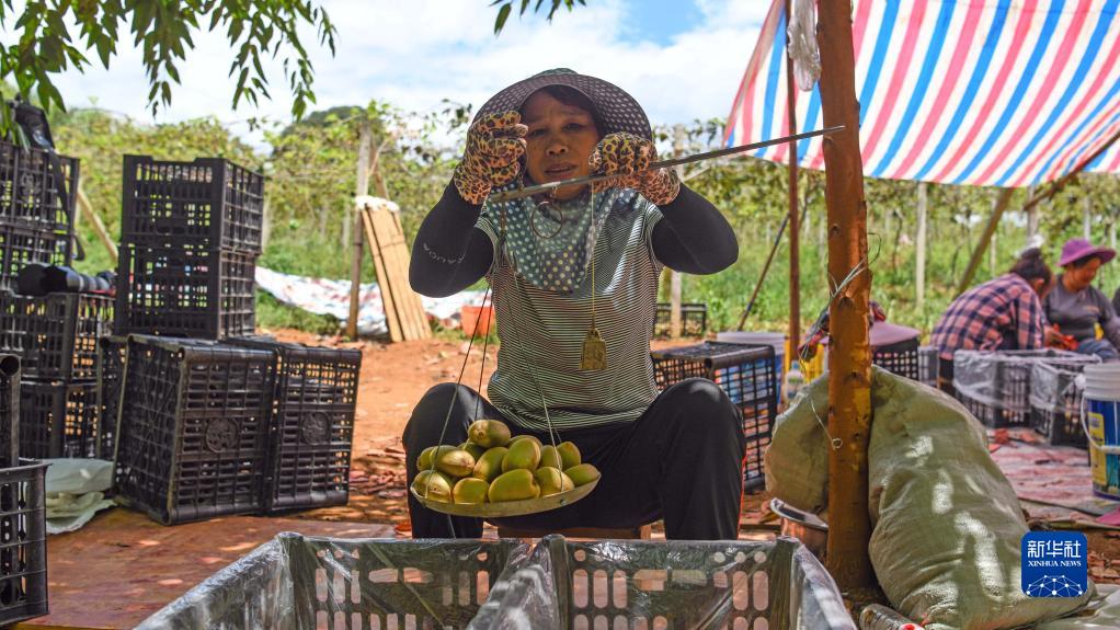 在廣西融安縣大良鎮石門(mén)村獼猴桃種植園,一名村民將采摘的獼猴桃進(jìn)行稱(chēng)重(8月20日攝)。