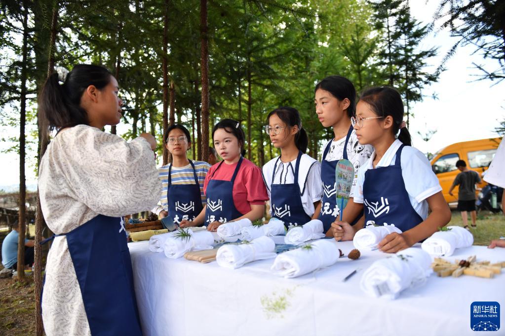 今年7月,附近村莊和鄰近縣市的70多個(gè)孩子參加了大元社的暑期活動(dòng),在完成基本學(xué)業(yè)之余,學(xué)習手工、繪畫(huà)、音樂(lè )等藝術(shù)相關(guān)課程。8月20日傍晚,孩子和村民們一起舉辦的藝術(shù)節便是“結業(yè)典禮”。為了準備藝術(shù)節的重頭戲——沉浸式戲劇,孩子們自己打磨劇本、設計服裝、調試燈光,40多個(gè)孩子穿著(zhù)自己設計的服裝,期待著(zhù)屬于他們的鄉村藝術(shù)節。