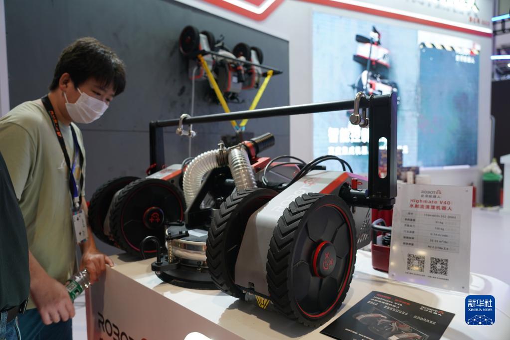 這是在2022世界機器人博覽會(huì )現場(chǎng)拍攝的水射流清理機器人(8月18日攝)。