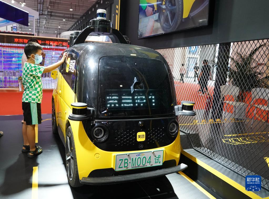 這是在2022世界機器人博覽會(huì )“機器人+物流”展區現場(chǎng)拍攝的自動(dòng)配送車(chē)(8月20日攝)。