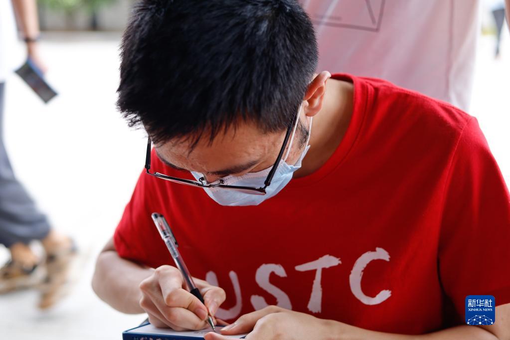 6月28日,在中國科學(xué)技術(shù)大學(xué)畢業(yè)典禮上,一名2022屆畢業(yè)生寫(xiě)下對2022級新生的祝福話(huà)語(yǔ)。