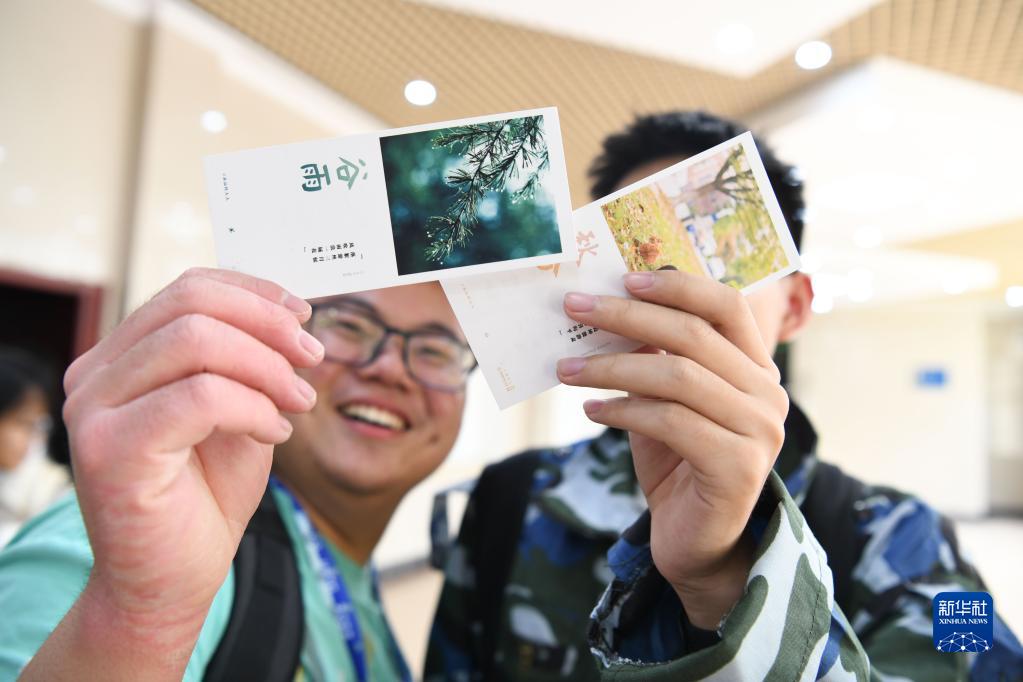 8月21日,中國科學(xué)技術(shù)大學(xué)2022級本科新生領(lǐng)取寫(xiě)有學(xué)長(cháng)學(xué)姐祝福的明信片。