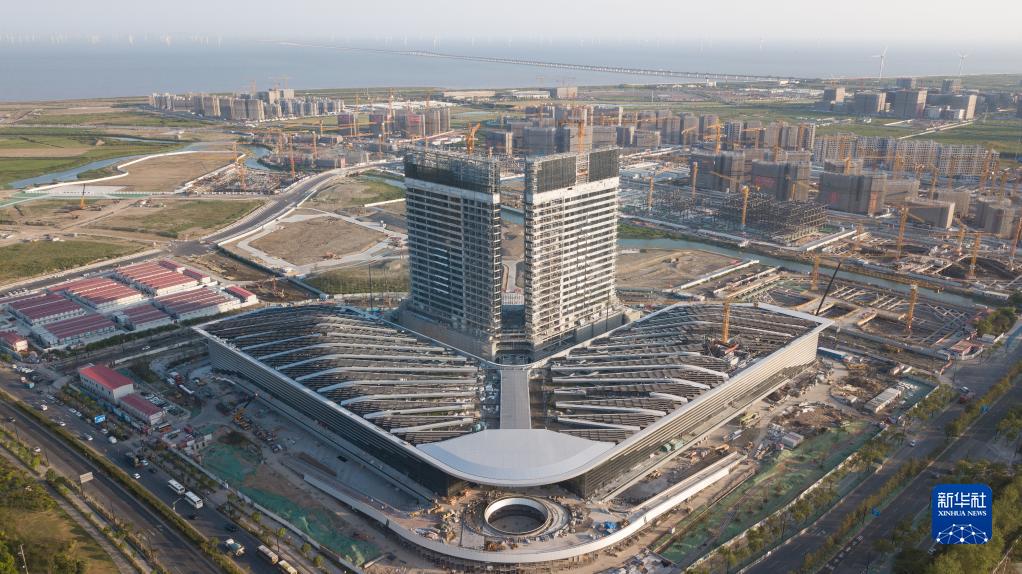 這是在中國(上海)自由貿易試驗區臨港新片區拍攝的建設中的世界頂尖科學(xué)家論壇永久會(huì )址(無(wú)人機照片,8月19日攝)。