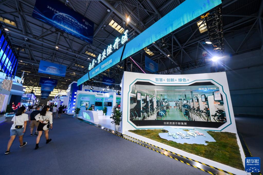 8月21日,媒體記者和嘉賓在2022中國國際智能產(chǎn)業(yè)博覽會(huì )會(huì )場(chǎng)內參觀(guān)。