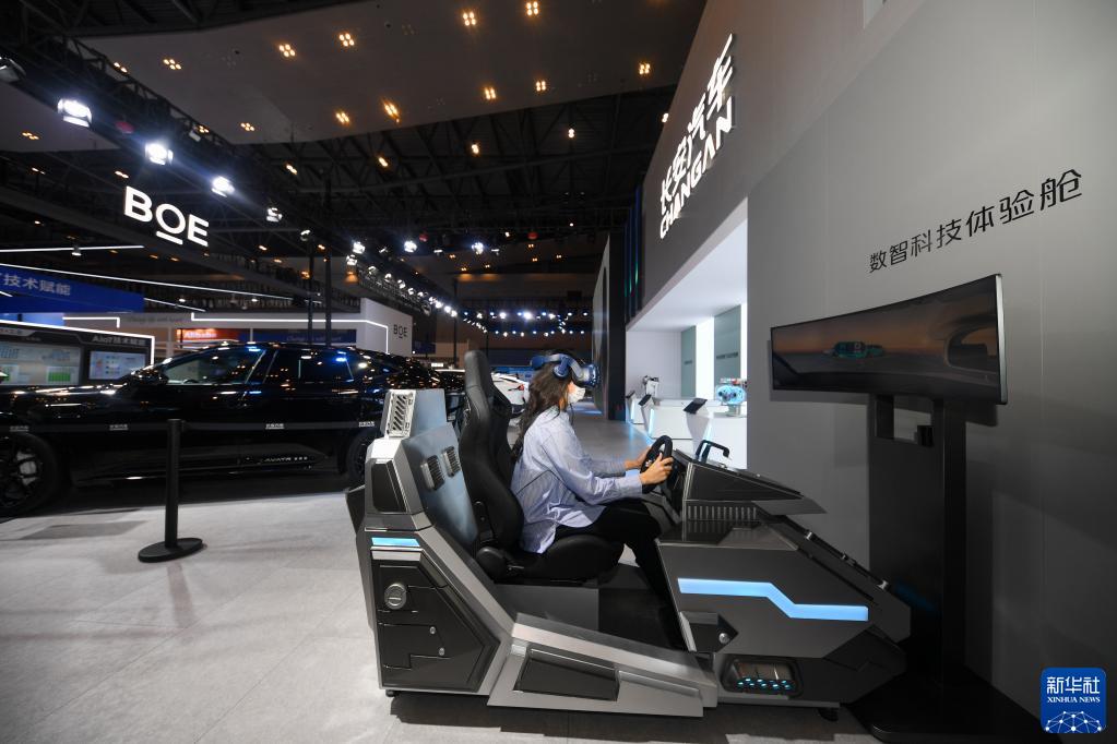 8月21日,媒體記者在2022中國國際智能產(chǎn)業(yè)博覽會(huì )長(cháng)安汽車(chē)展廳體驗數智科技體驗艙。