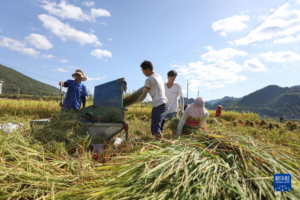 連日來(lái),重慶市持續高溫天氣,部分地區出現不同程度的旱情。為降低影響,重慶市秀山土家族苗族自治縣溶溪鎮的農民抓緊有利時(shí)機搶收水稻,確保糧食顆粒歸倉。