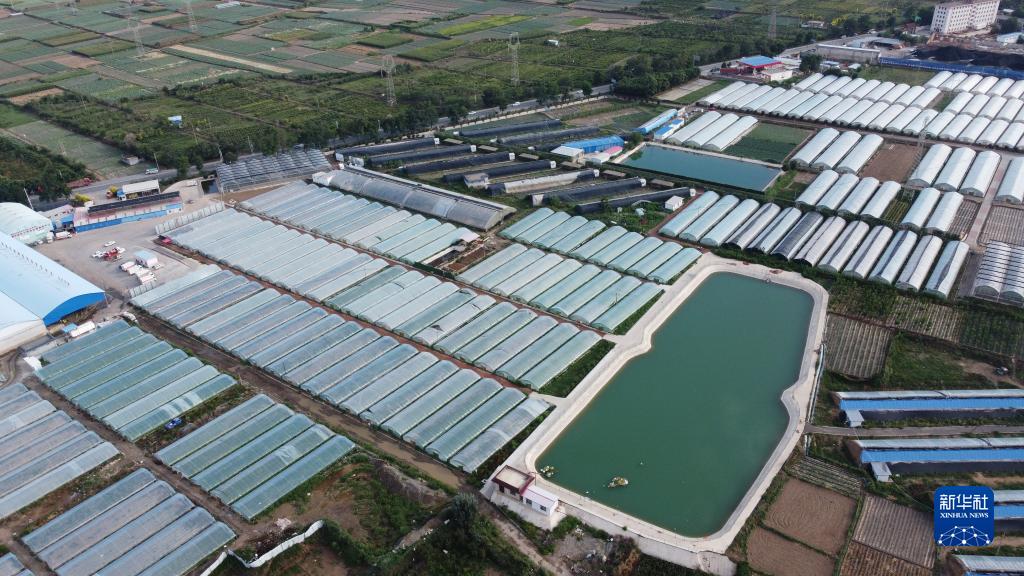 這是8月15日在蘭州市榆中縣三角城鄉拍攝的榆中康源現代設施農業(yè)示范園區(無(wú)人機照片)。