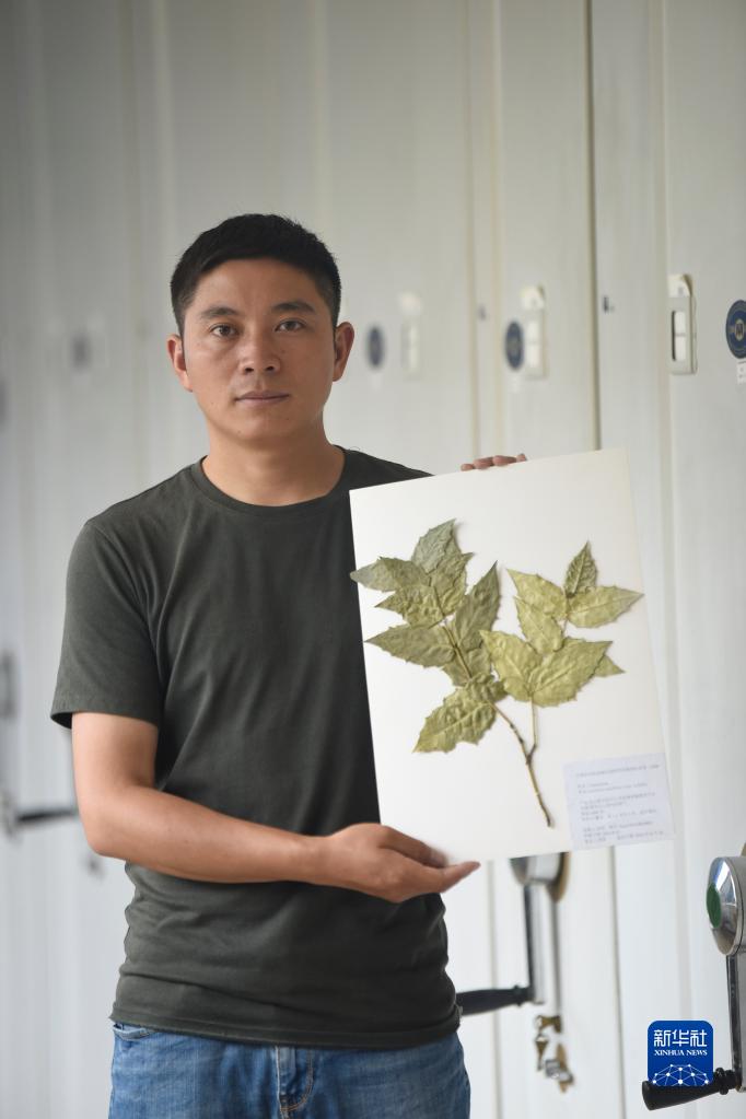 胡君展示采集的尖齒衛矛標本(8月17日攝)。