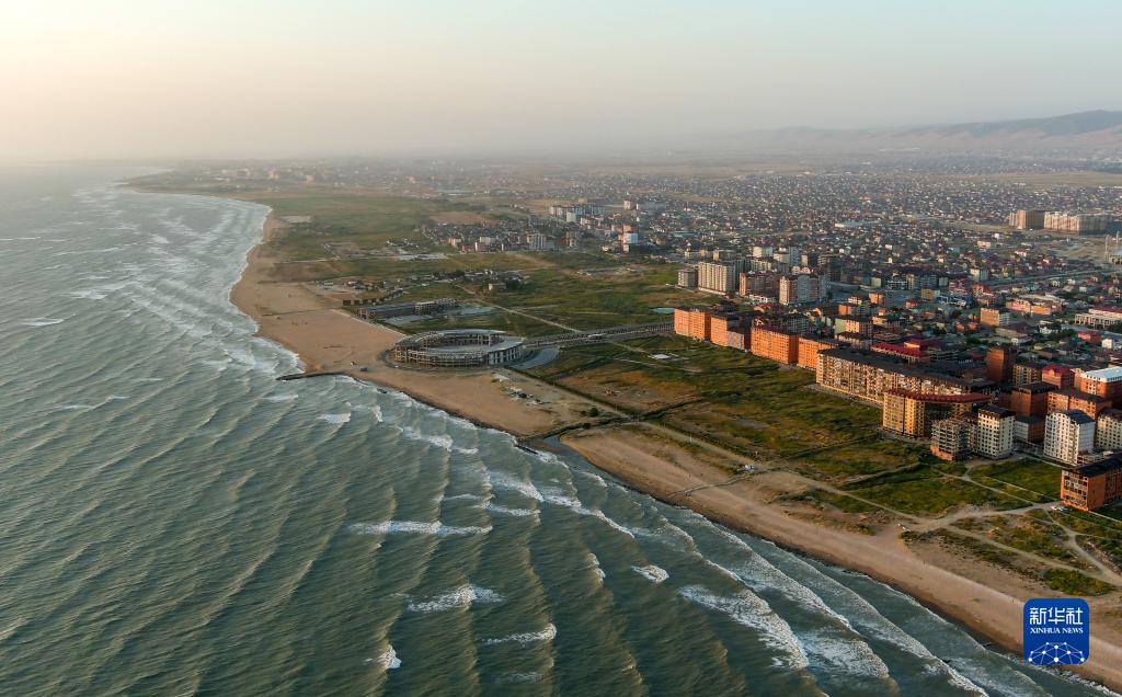 這是8月21日在俄羅斯達吉斯坦共和國馬哈奇卡拉市航拍的海濱風(fēng)光。新華社/塔斯社