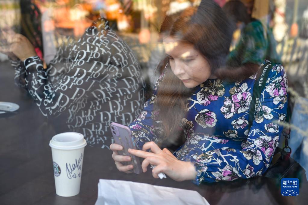 8月22日,顧客在俄羅斯莫斯科一家“星咖啡”門(mén)店用餐。