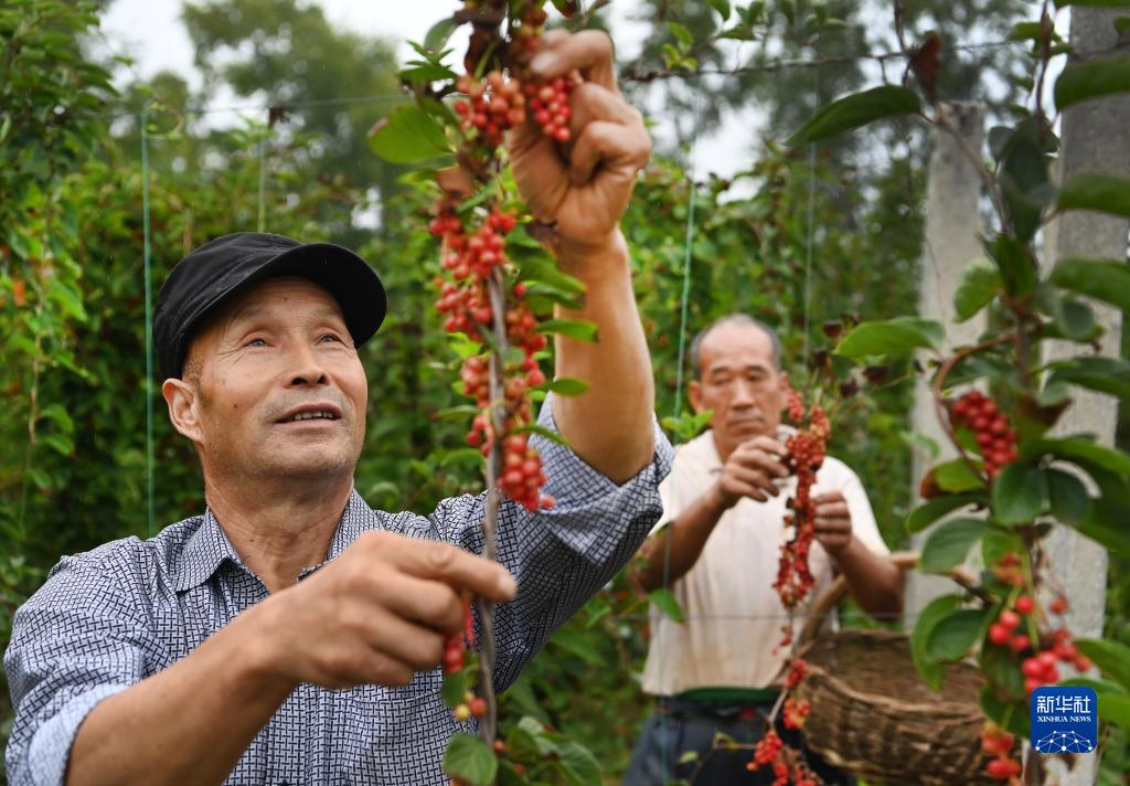 8月23日,洛南縣麻坪鎮三興村村民在采摘五味子。