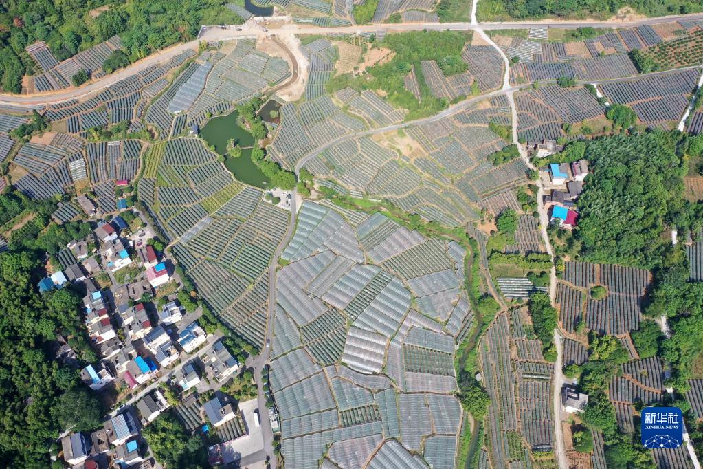 這是廣西全州縣才灣鎮毛竹山村葡萄園(8月23日攝,無(wú)人機照片)。
