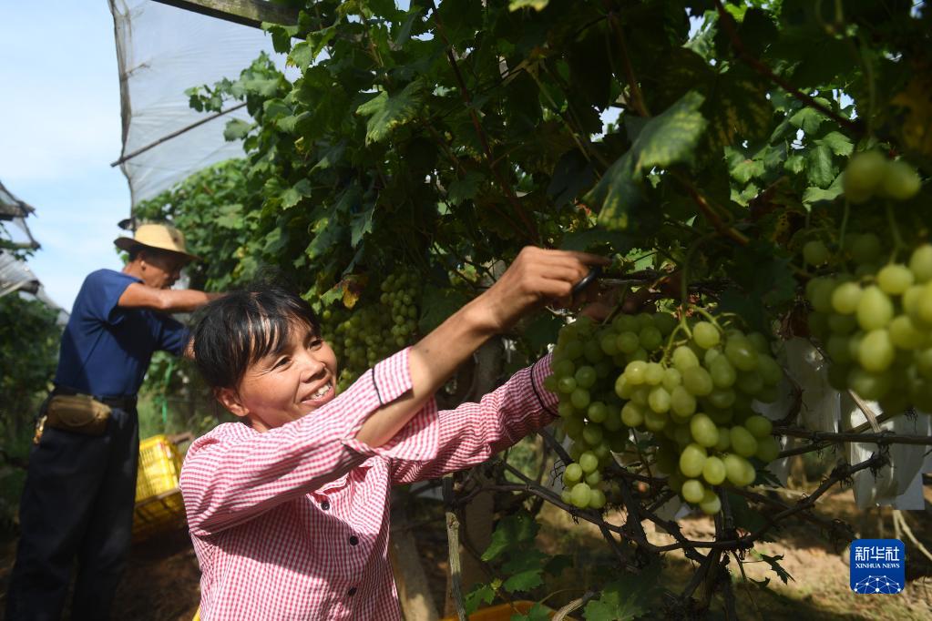 8月23日,在廣西全州縣才灣鎮毛竹山村,當地村民在收摘葡萄。