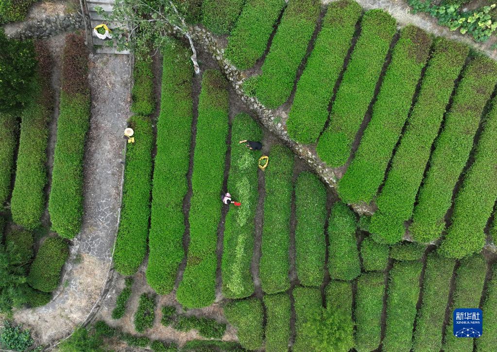 8月23日,湖北省宜昌市秭歸縣茅坪鎮松樹(shù)坳村村民在茶園采秋茶(無(wú)人機照片)。