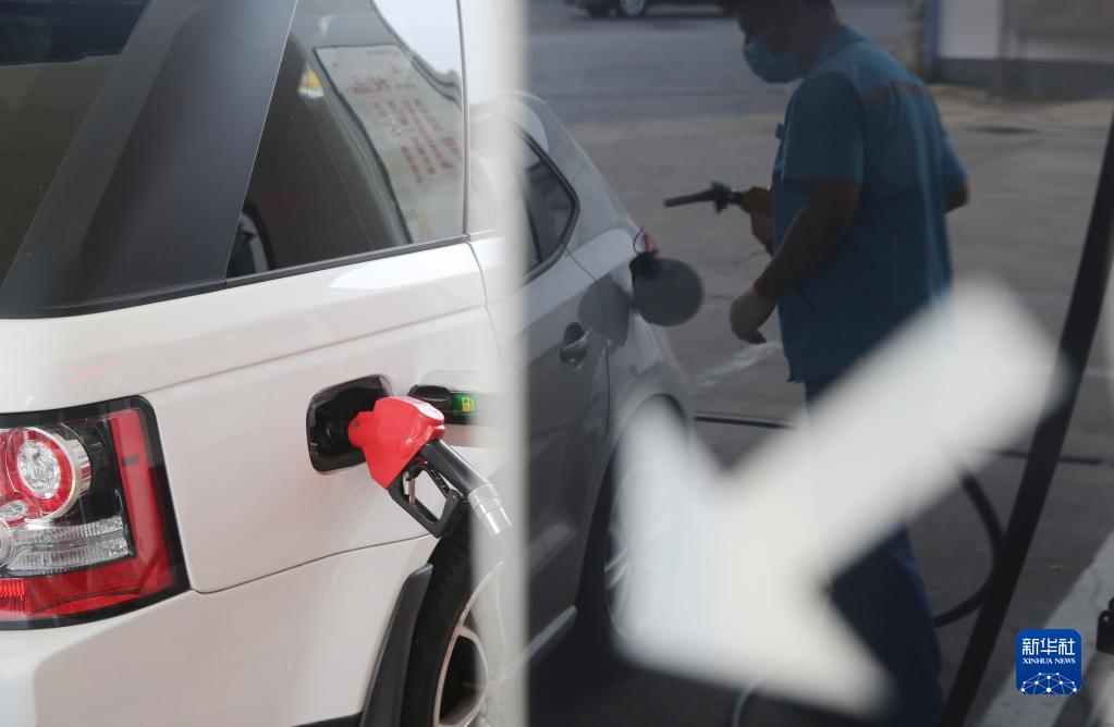 8月23日,江蘇無(wú)錫一加油站工作人員給汽車(chē)加油。