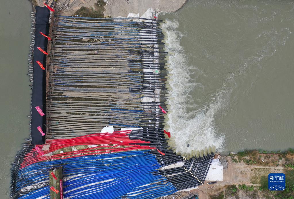 為應對旱情,江蘇省投入防汛抗旱力量,在南京市高淳區水碧橋閘進(jìn)水口處,架設約100臺套潛水電泵,從水陽(yáng)江向位于高淳區的固城湖補水,確保當地居民生活和農業(yè)生產(chǎn)用水。