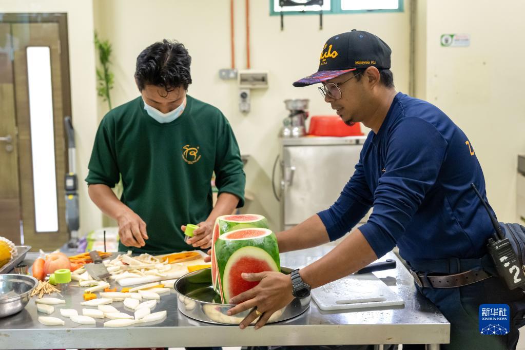 8月23日,在馬來(lái)西亞吉隆坡附近的馬來(lái)西亞國家動(dòng)物園,飼養員為大熊貓“靚靚”準備生日大餐。