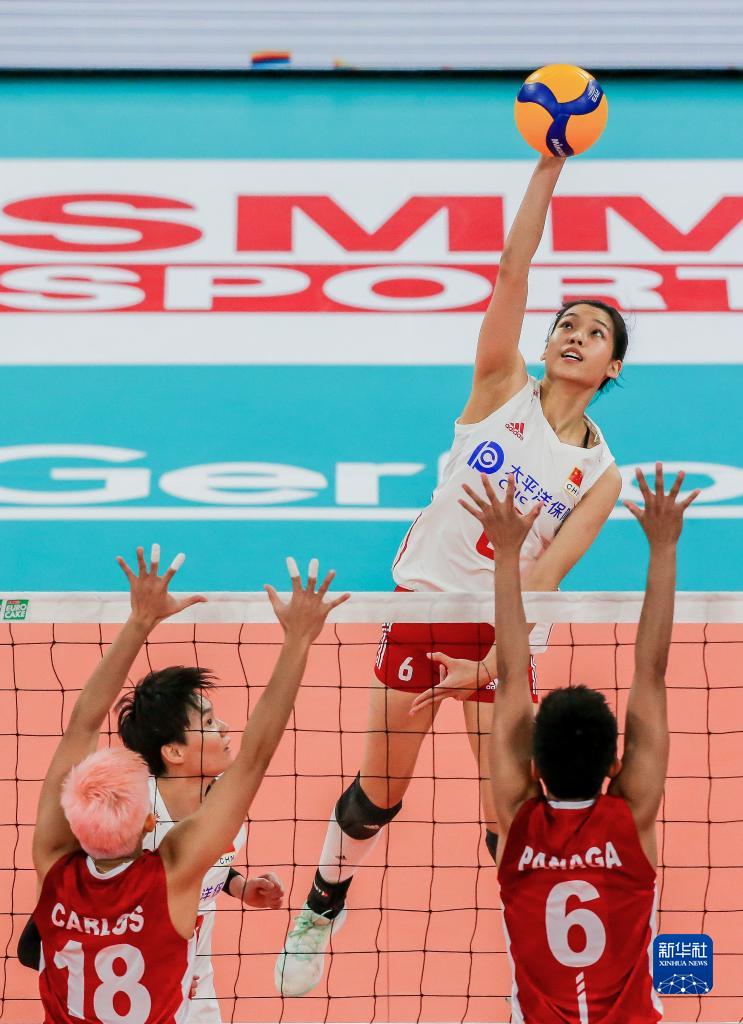 當日,在菲律賓帕西格市舉行的2022年女排亞洲杯小組賽中,中國隊以3比0戰勝菲律賓隊,取得三連勝。