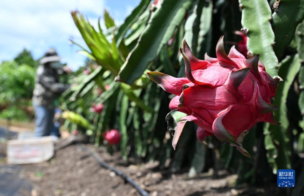 8月24日,村民在三亞市育才生態(tài)區馬腳村“水果島”火龍果生產(chǎn)基地采摘火龍果。