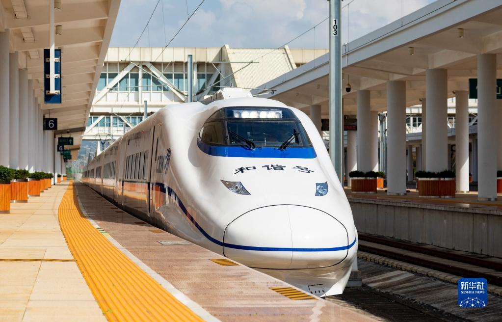 8月23日,綜合檢測車(chē)駛出彌蒙高鐵彌勒站。