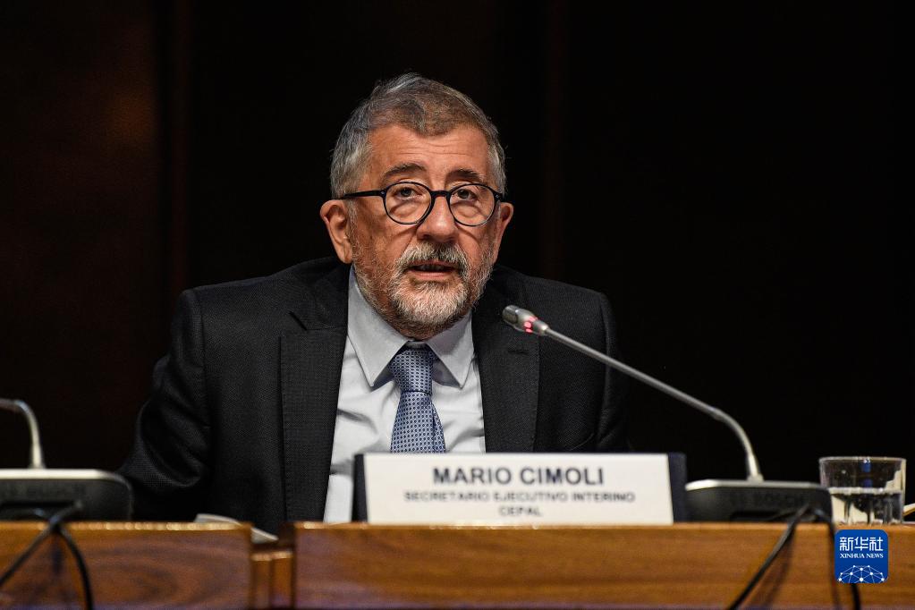 8月23日,拉加經(jīng)委會(huì )臨時(shí)執行秘書(shū)馬里奧·西莫利在智利首都圣地亞哥出席新聞發(fā)布會(huì )。