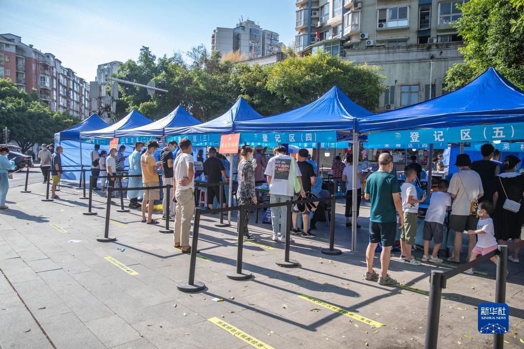 8月24日,居民在重慶市兩江新區人和街道邢家橋社區采樣點(diǎn)有序排隊進(jìn)行核酸檢測。