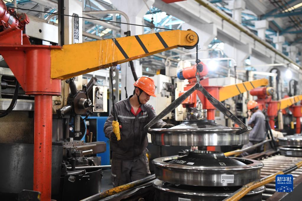 8月24日,在中車(chē)株洲車(chē)輛有限公司轉向架工區,工人在生產(chǎn)線(xiàn)上作業(yè)。