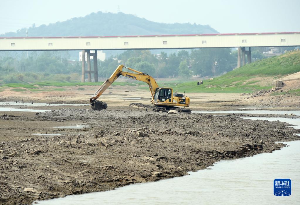 8月23日,在安徽省蕪湖市繁昌區荻港鎮,水上挖掘機在河道里進(jìn)行清淤作業(yè),疏通引水渠道。