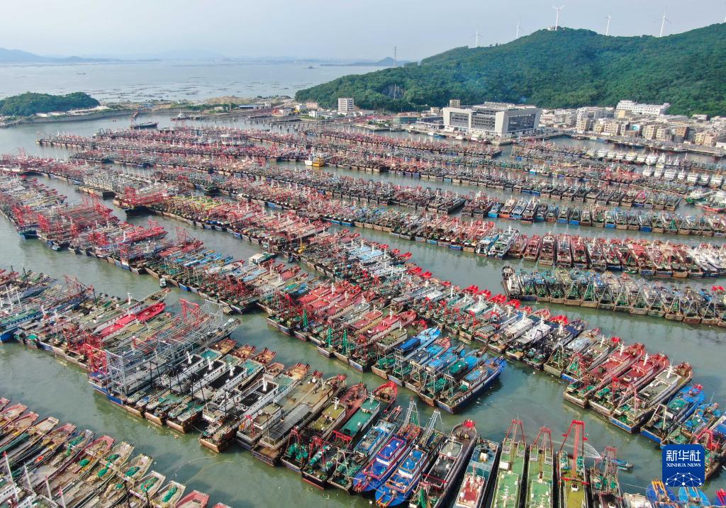 8月24日,在廣東陽(yáng)江市海陵島閘坡國家級中心漁港,停滿(mǎn)了歸港避風(fēng)的漁船(無(wú)人機照片)。