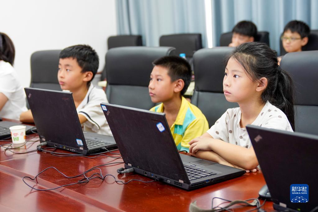 8月24日,在重慶豐都縣高家鎮汶溪社區黨群服務(wù)中心內,幾名加入家庭教育互助會(huì )的孩子在機器人編程課上學(xué)習如何為智能機器人編程。