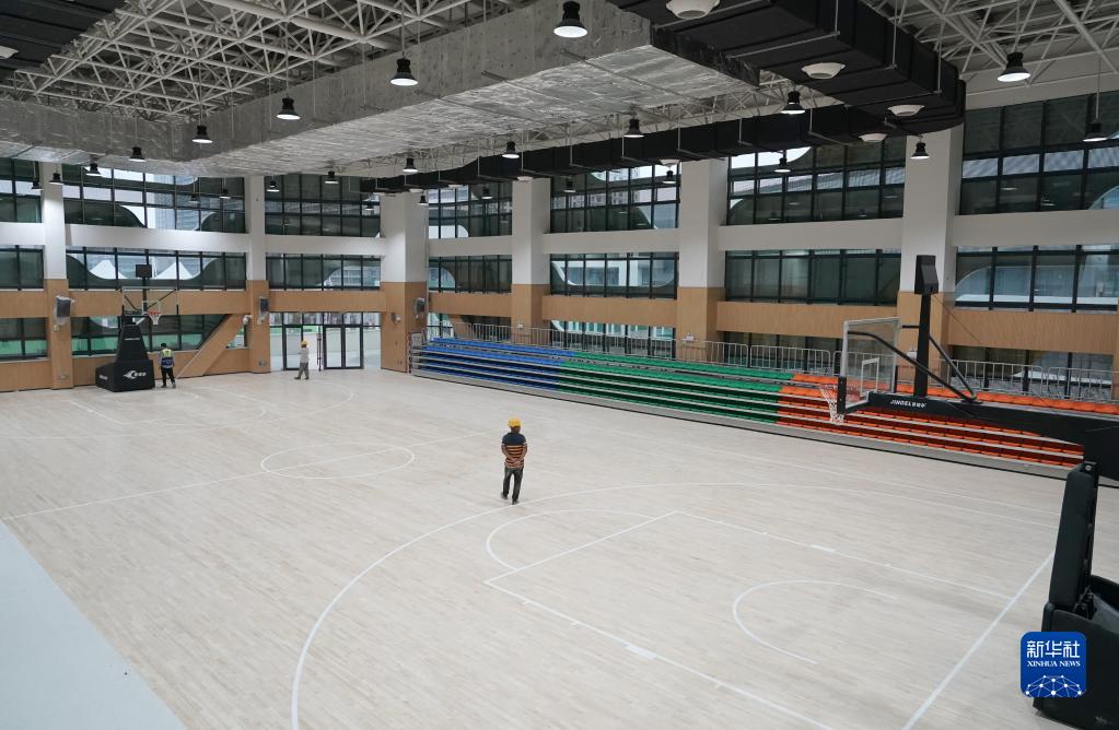 新建成的西安市雁塔區第一小學(xué)的室內籃球館(8月25日攝)。