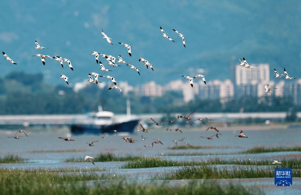 近日,位于福建福州的閩江河口濕地,迎來(lái)成群結隊南飛遷徙的候鳥(niǎo)“先頭部隊”。