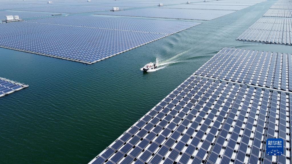 8月25日拍攝的潁上縣毛圩水上光伏電站(無(wú)人機照片)。