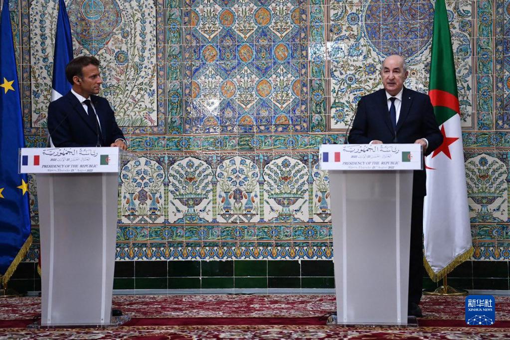 8月25日,阿爾及利亞總統特本(右)在首都阿爾及爾與到訪(fǎng)的法國總統馬克龍舉行聯(lián)合記者會(huì )。