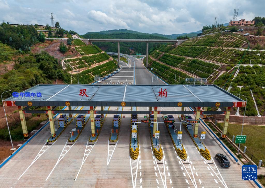 8月26日,車(chē)輛通過(guò)雙柏收費站駛入玉楚高速(無(wú)人機照片)。