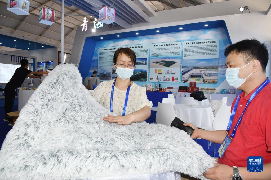 8月26日,參會(huì )者在博覽會(huì )青海展館內洽談。