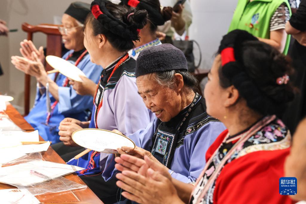 8月26日,貴陽(yáng)市花溪區青巖鎮山王廟村婦女在刺繡扇面。