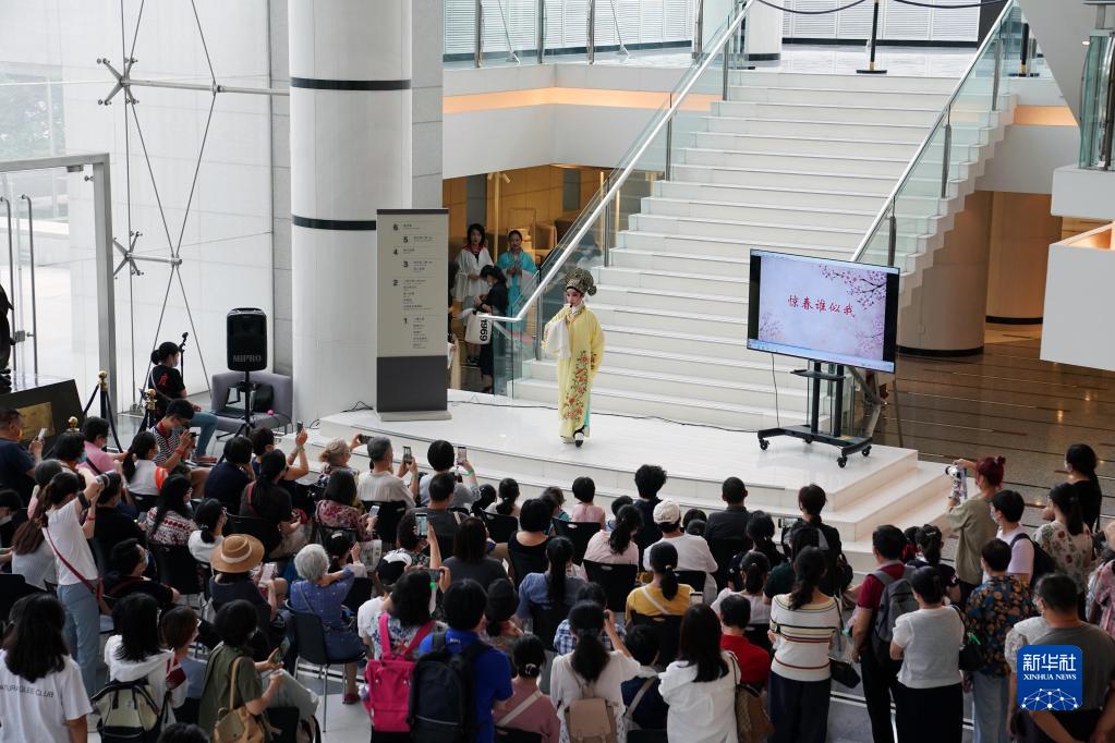 8月27日在上海大劇院大堂內拍攝的昆曲演唱快閃活動(dòng)。